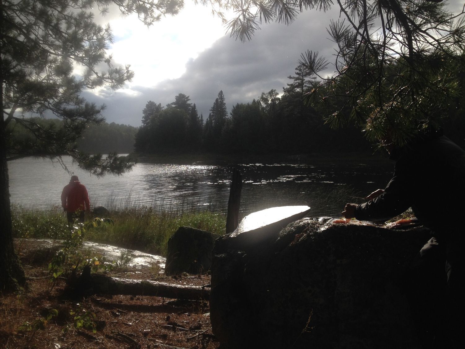 Prepping the fish on the 'sous chef' rock after a squall