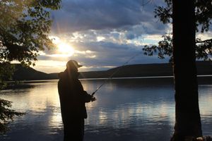 fishing at sunset