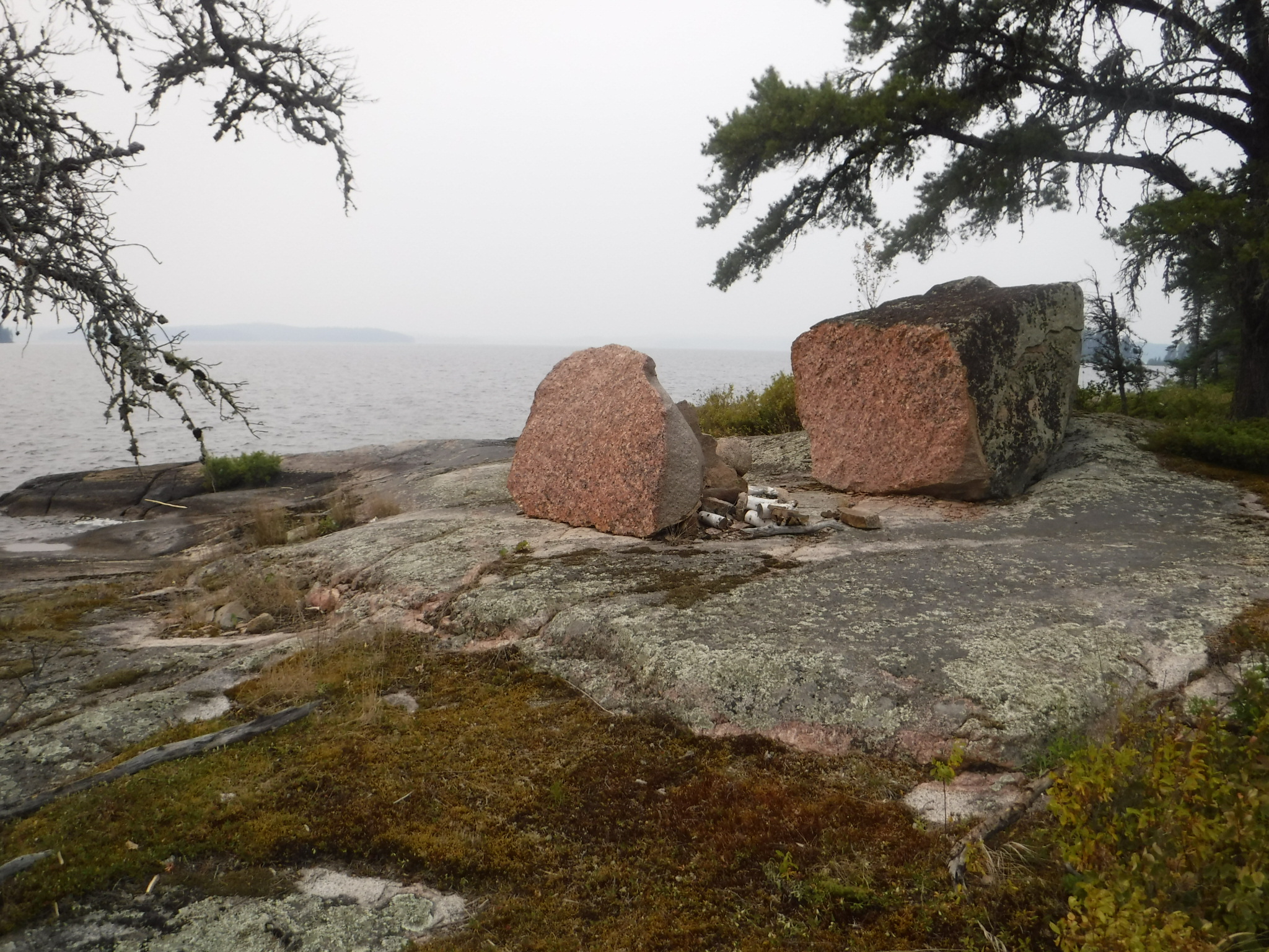 Glacial erratic boulder fire pit looking west